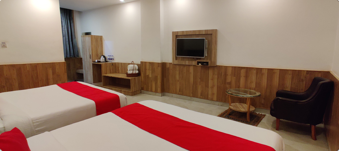 Experience unparalleled tranquility and spiritual immersion in the Shrine View Room at Bali Resort Katra. Nestled amidst the majestic landscapes of Katra, this room offers a haven of serenity overlooking the revered shrine.